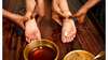 4. Udvarthana : Un mélange de farine de pois-chiches et d'herbes est appliqué pour nettoyer les pores de la peau et les tissus. Ce massage à sec fait remonter les toxines à la surface de la peau, et il est complété par une sudation qui les fera sortir. Idéal pour lutter contre la cellulite.